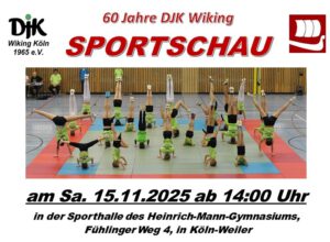 60 Jahre DJK Wiking, 60 Jahre Sport für alle – Jubiläums-Sportschau am Samstag 15. November 2025 ab 14 Uhr in der Sporthalle des Heinrich-Mann-Gymnasiums