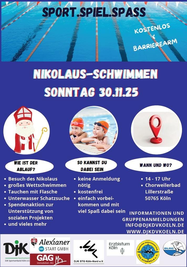 Am 30. November 2025 führt die DJK STG Köln-Nord im Chorweilerbad das traditionelle Nikolausschwimmen durch