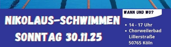 Am 30. November 2025 führt die DJK STG Köln-Nord im Chorweilerbad das traditionelle Nikolausschwimmen durch