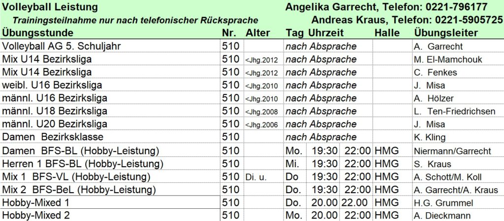 Informationen zum Inhalt der Trainingsstunden entnehmen Sie bitte den Darstellungen der einzelnen Abteilungen. Den Trainingsort der jeweiligen Halle entnehmen Sie bitte dem Hallenverzeichnis. Nachfolgend die Übersicht über die Angebote der Abteilungen:1 – Basketball