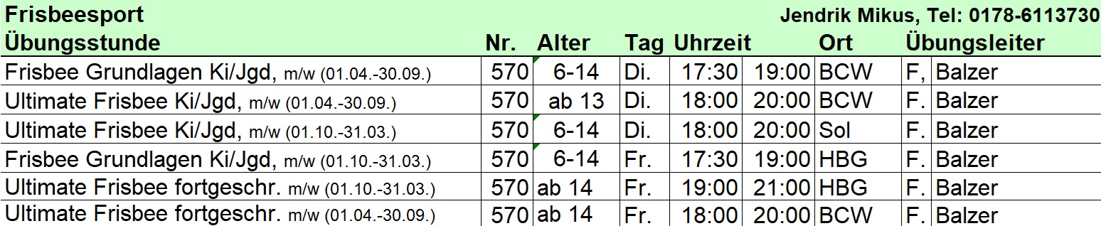 Informationen zum Inhalt der Trainingsstunden entnehmen Sie bitte den Darstellungen der einzelnen Abteilungen. Den Trainingsort der jeweiligen Halle entnehmen Sie bitte dem Hallenverzeichnis. Nachfolgend die Übersicht über die Angebote der Abteilungen: